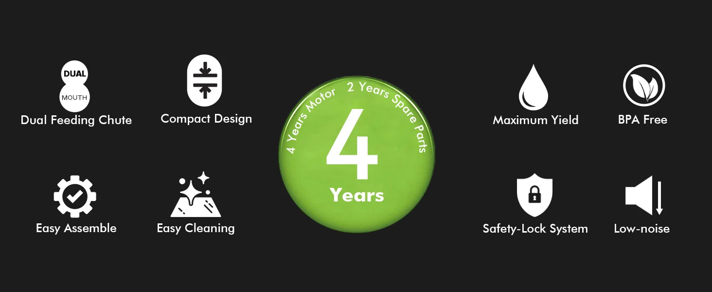 Anti-Clog Mechanism – Smooth operation even with fibrous ingredients.
